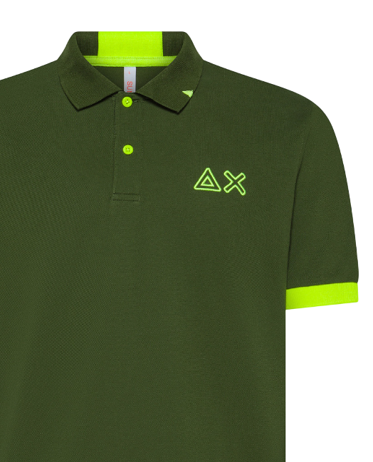 SUN68 UOMO POLO LOGO FLUO VERDE SCURO