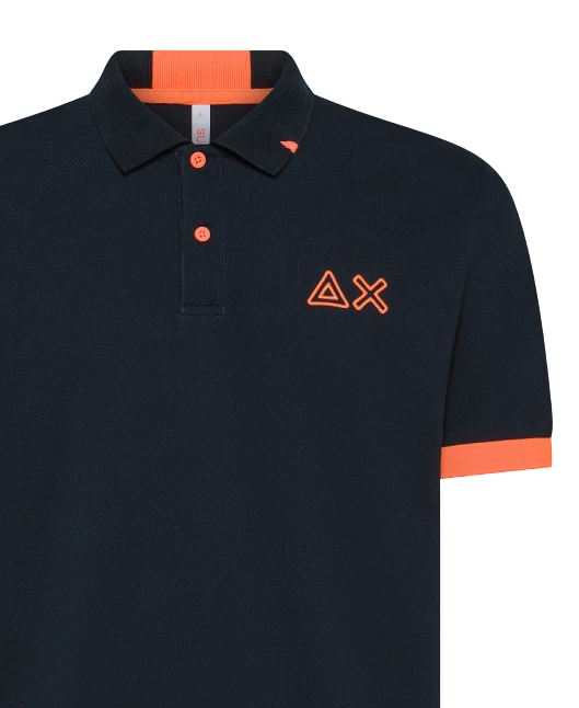 SUN68 UOMO POLO LOGO FLUO NAVY BLUE