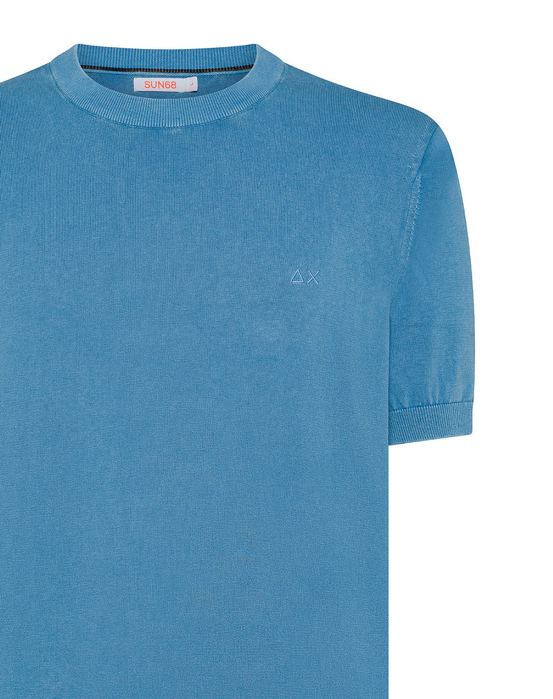 SUN68 UOMO T-SHIRT SWEATER COTTON CREPE BLU