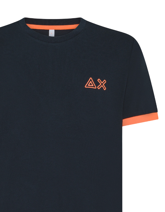 SUN68 T-SHIRT PIQUET LOGO FLUO NAVY BLUE