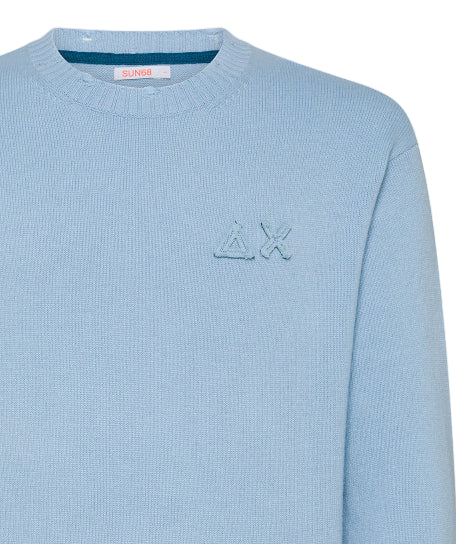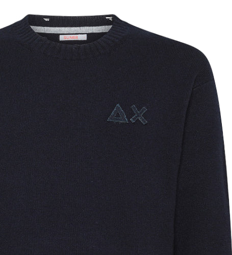 SUN68 MAGLIA ROUND VINTAGE PLAIN IN LANA MERINO NAVY GRIGIO SCURO