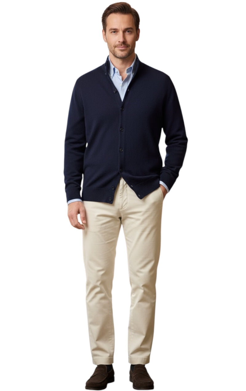 MARK MIDOR CARDIGAN LANA MERINO A TRAMA SPESSA COLORE BLU NAVY