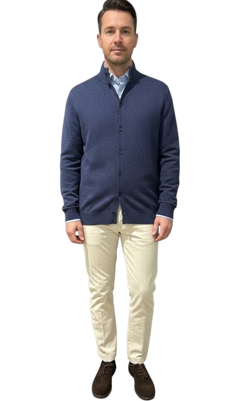MARK MIDOR CARDIGAN FULL ZIP MICROPUNTINATO LANA MERINO DENIM
