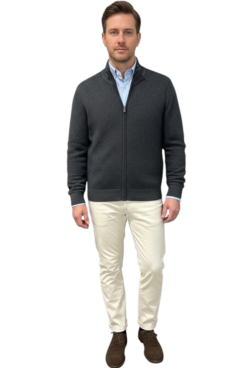 MARK MIDOR CARDIGAN FULL ZIP MICROPUNTINATO LANA MERINO ANTRACITE