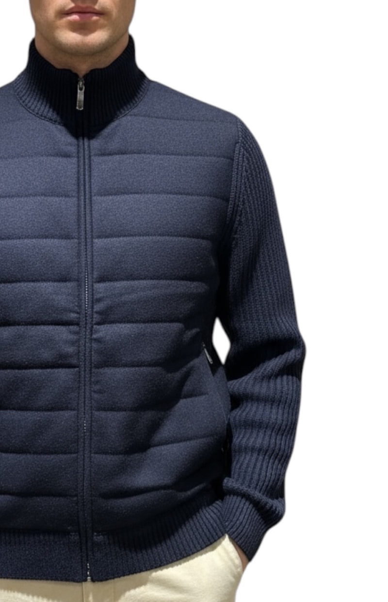 MARK MIDOR MAGLIA FULL ZIP IN LANA CASHMERE BICOLOR BLU NAVY