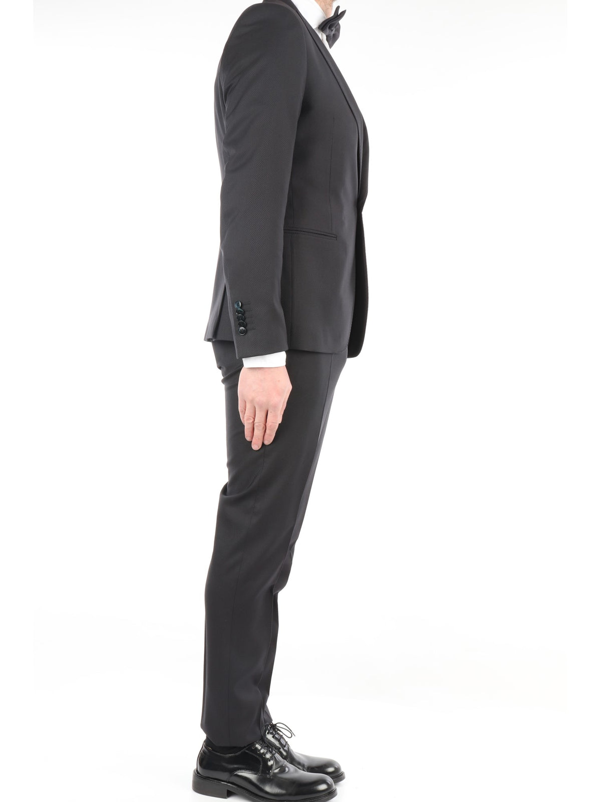 L'abito uomo di Manuel Ritz, un classico dell'eleganza italiana. Modello di colore blu scuro a monopetto per uno stile elegante da cerimonia. Chiusura centrale a un bottone. Collo a punta con logo Manuel Ritz. Tasche laterali con patte, taschino a filo con pochette in dotazione. Maniche lunghe con bottoni e pantaloni e gilet in coordinato. I dettagli in tessuto su trama leggera fanno di questo abito un capo elegante e raffinato.