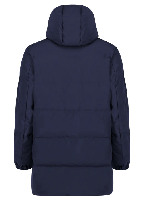 Piumino lungo trapuntato in nylon stretch two layers con membrana, interno con piumino 90/10.