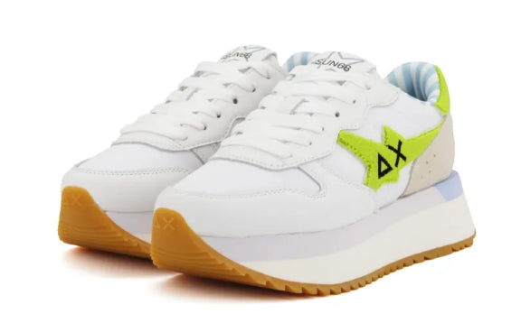 SUN68 SNEAKERS DONNA BIG STARGIRL SPONGE LOGO BIANCO LIME