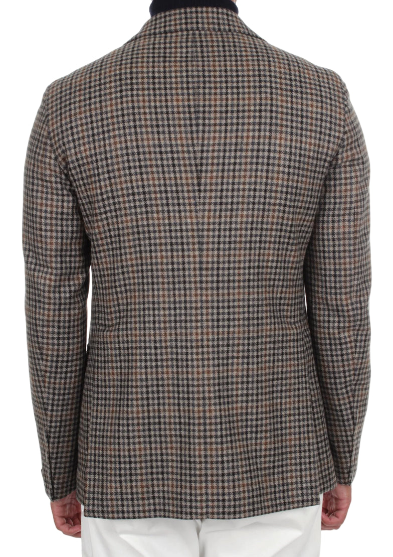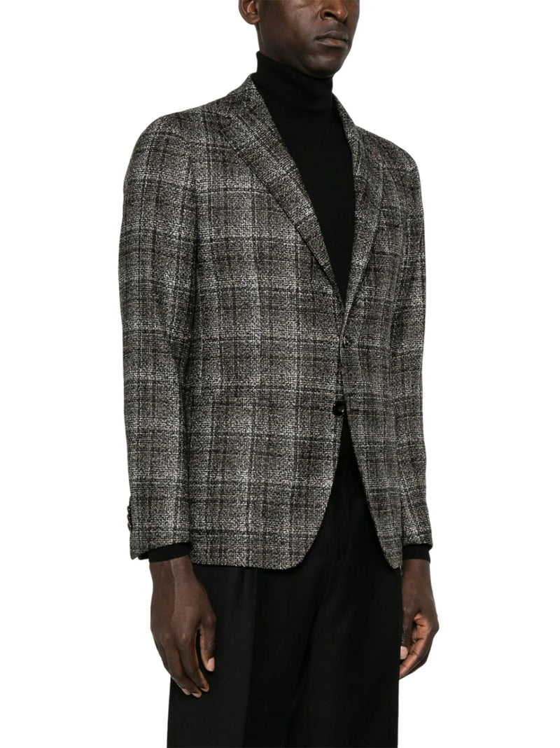 TAGLIATORE GIACCA MONOPETTO MISTO LANA FANTASIA QUADRI MARRONE