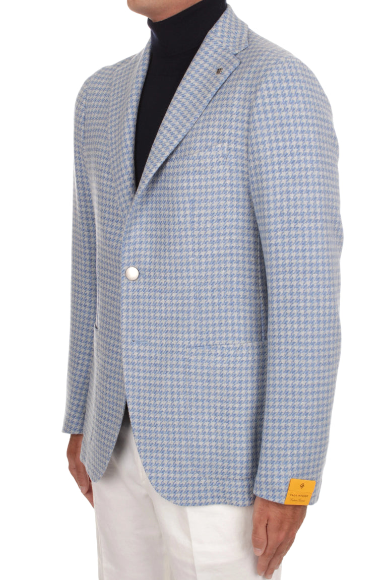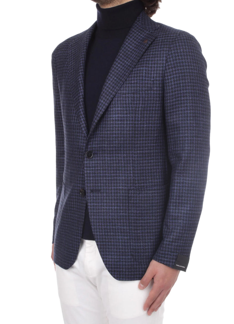 TAGLIATORE UOMO GIACCA MONOPETTO PIED DE POULE AZZURRO